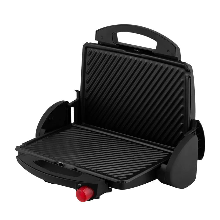 Con piastre antiaderenti e staccabili e, termostato regolabile.