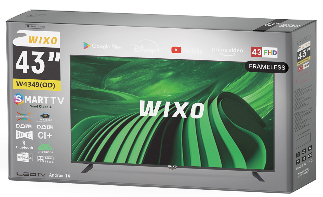 Wixo-W5549(OD)-Qled Wixo Smart TV HD 55? ANDROID 14 Smart tv UHD 4k Full Screen Pannello Classe A, Android 14 Impostazione rapporto di contrasto dinamico (DRC), Filtro digitale 3D Display a colori 16.7, Ingresso HDMI, Funzione multimediale USB2.0 Manuale d uso multilingue Dim. Tv: 1226.2*78*712mm