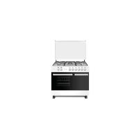 L90BT5GB. Cucina a gas 90x60 cm - Forno a Gas Ventilato - Grill Elettrico - Con Forno 72 Lt - Con Portabombola - 5 Fuochi a gas con Tripla corona centrale - Ventola tangenziale di raffreddamento - Coperchio in vetro con profilo alluminio - CON STOP GAS A CHIUSURA COPERCHIO - Timer meccanico - Luce forno - Accensione elettronica Termostato temperatura - Vetro interno removibile per pulizia - Piedi regolabili -